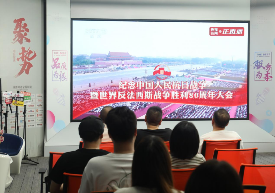 2025年9月3日上午,盛世經(jīng)典營銷策劃公司的部分員工齊聚會議室,共同觀看了一場氣勢恢宏的閱兵式。屏幕中,徒步方隊(duì)步伐鏗鏘,裝備方隊(duì)鐵流滾滾,空中梯隊(duì)呼嘯蒼穹;會議室內(nèi),掌聲陣陣,心潮澎湃,自豪與感動(dòng)在每個(gè)人心中激蕩。
